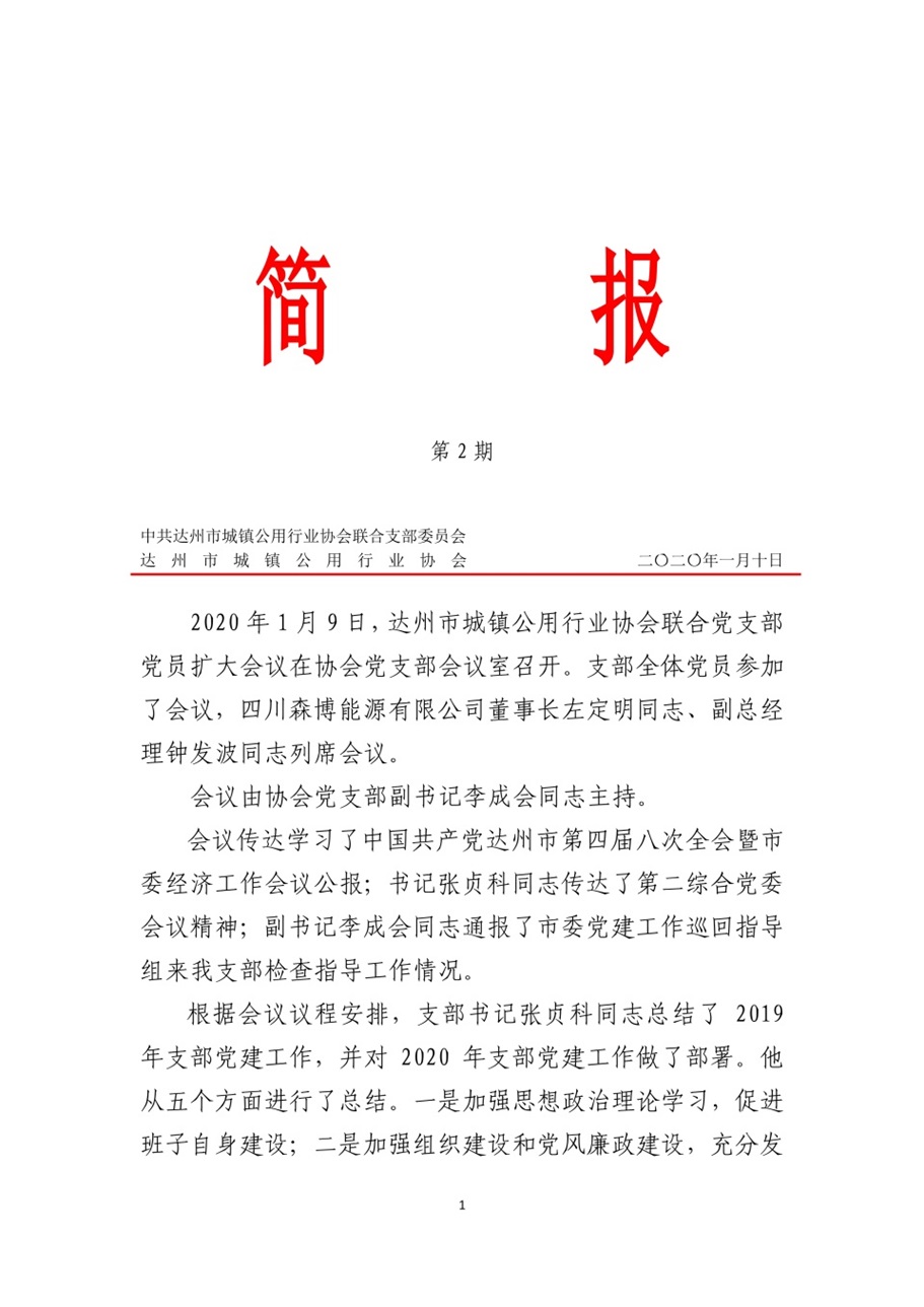 中共達(dá)州市城鎮(zhèn)公用行業(yè)協(xié)會(huì)聯(lián)合支部委員會(huì)2020年第一期簡(jiǎn)報(bào)