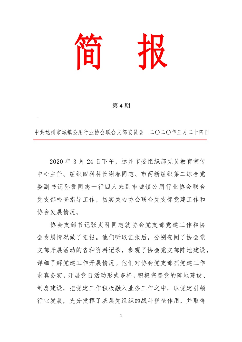 中共達(dá)州市城鎮(zhèn)公用行業(yè)協(xié)會(huì)聯(lián)合支部委員會(huì)2020年第四期簡(jiǎn)報(bào)
