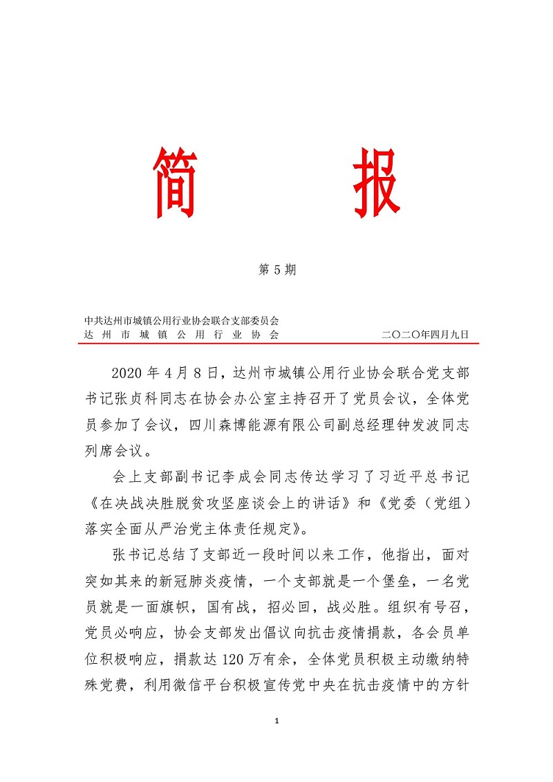中共達州市城鎮(zhèn)公用行業(yè)協(xié)會聯(lián)合支部委員會2020年第四期簡報