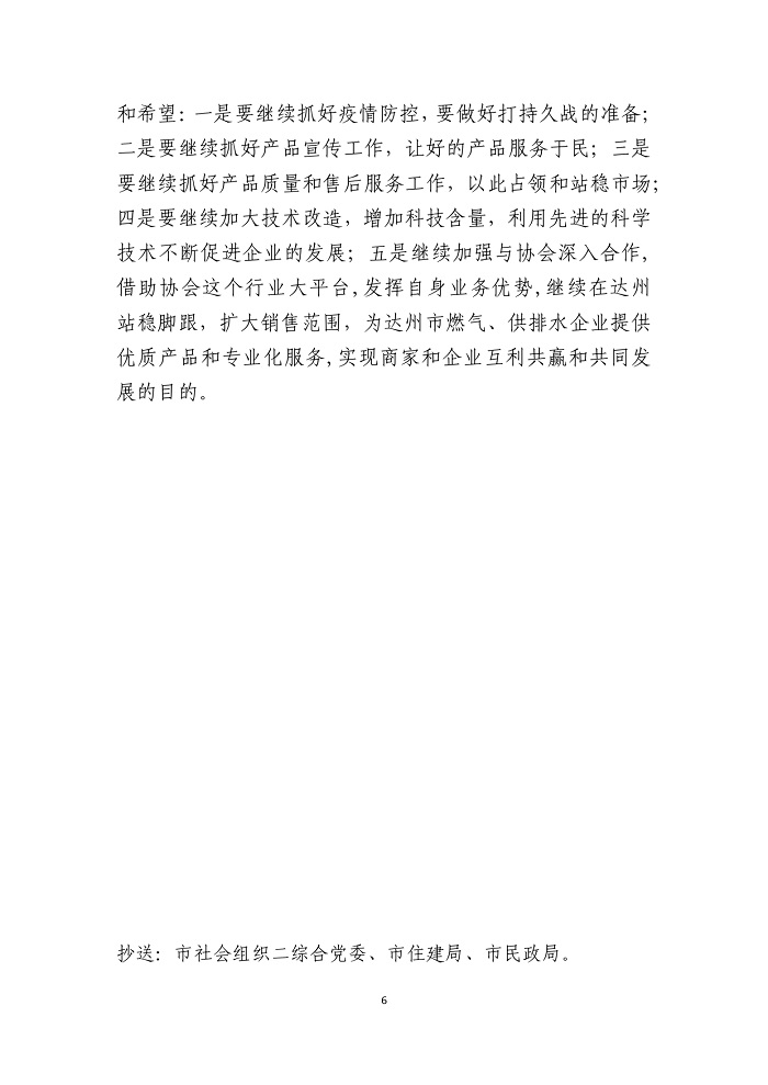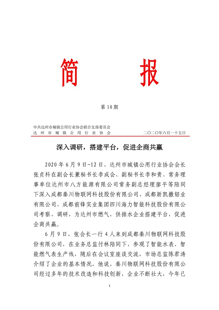 達(dá)州市城鎮(zhèn)公用行業(yè)協(xié)會(huì)2020年第十期簡(jiǎn)報(bào)