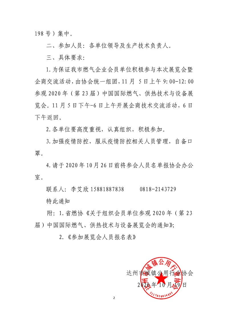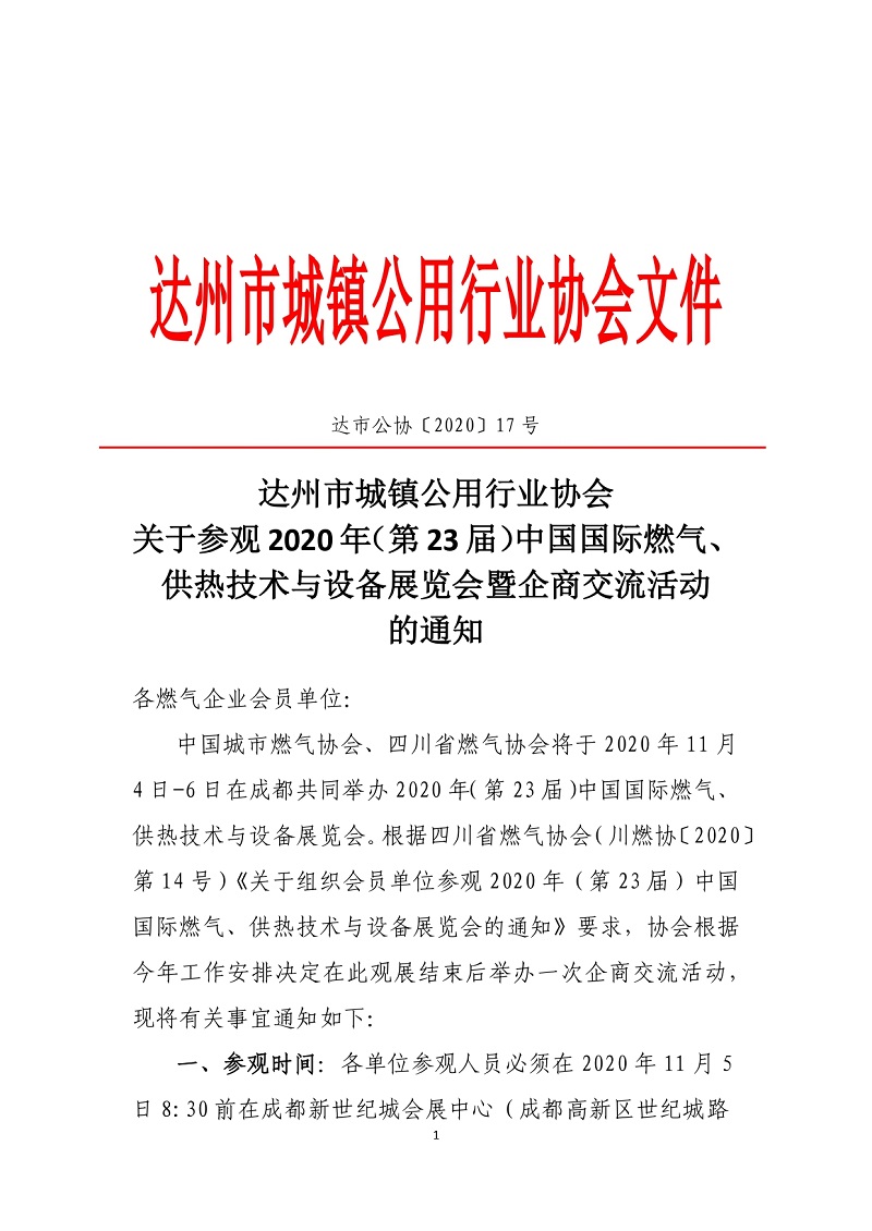 關(guān)于參觀(guān)2020年(第23屆)中國(guó)國(guó)際燃?xì)、供熱技術(shù)與設(shè)備展覽會(huì)暨企商交流活動(dòng)的通知