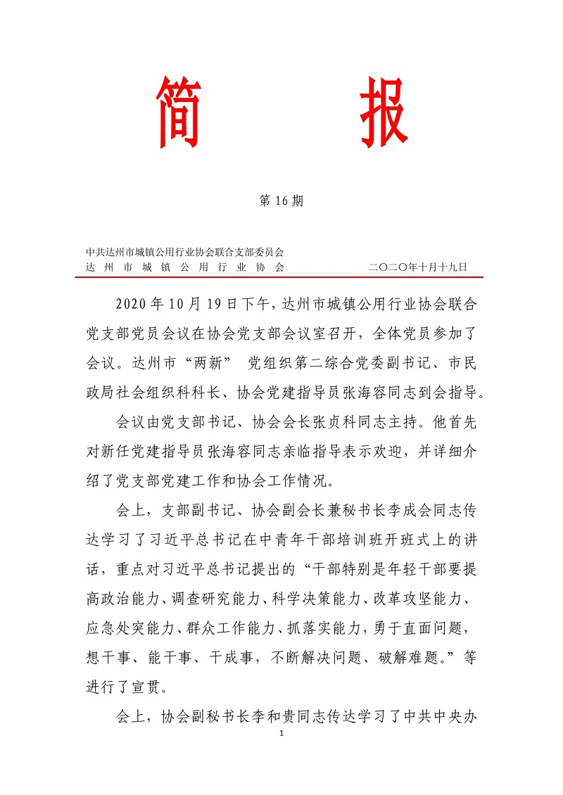 達州市城鎮(zhèn)公用行業(yè)協(xié)會2020年第十六期簡報