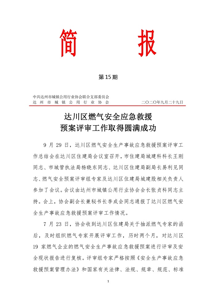 達州市城鎮(zhèn)公用行業(yè)協(xié)會2020年第十五期簡報