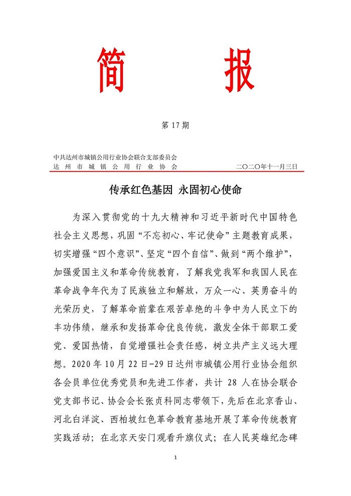 達(dá)州市城鎮(zhèn)公用行業(yè)協(xié)會(huì)2020年第十七期簡(jiǎn)報(bào)