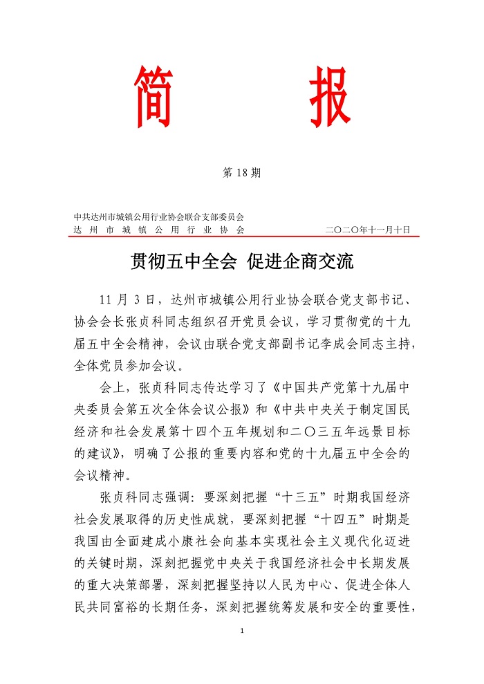 達(dá)州市城鎮(zhèn)公用行業(yè)協(xié)會(huì)2020年第十八期簡報(bào)