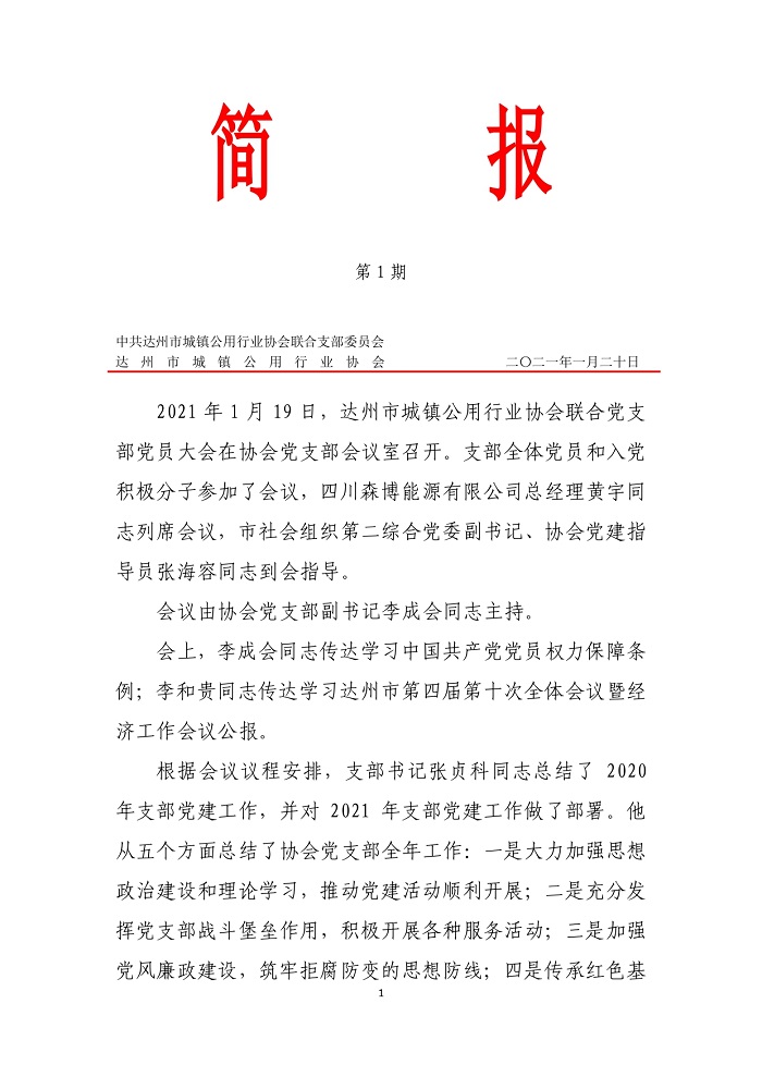 達州市城鎮(zhèn)公用行業(yè)協(xié)會2021年第一期簡報