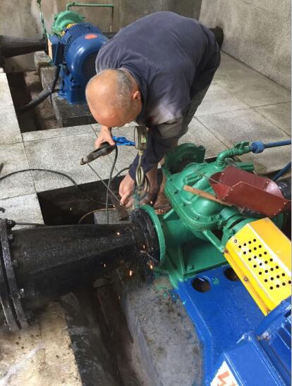 泓霖供水公司竹陽水廠維修電機(jī)保供水。7月20日上午11時,竹陽水廠機(jī)房工作人員上報,水廠75KW水泵運行后,與供水管道連接的大小頭管件漏水嚴(yán)重,接報后,公司立即組織機(jī)修人員前往檢查維修。