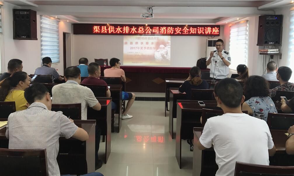 為加強(qiáng)安全生產(chǎn)工作,強(qiáng)化安全意識和提升管理水平,8月17日上午,渠縣供水排水總公司邀請了;泛拖腊踩矫娴膶<襾硭九e辦;饭芾砗拖腊踩R講座。
