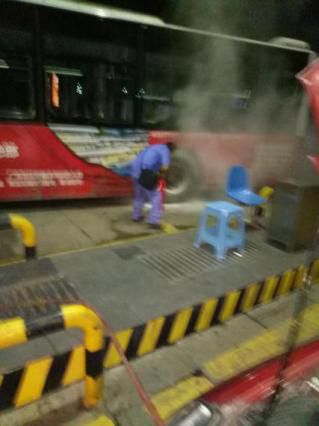 9月25日晚7:27分,市公交公司一輛16路公交車(川S68597)到達州華潤燃氣肖公廟加氣站加氣。當駕駛員把車?吭4#加氣機旁,準備像往常一樣加氣時,加氣班長彭華財突然發(fā)現(xiàn)該公交車左后輪處冒出一股濃煙,伴隨而來的是刺鼻的橡膠糊味,并燃起了火苗!安缓,公交車著火了。老曾,快關閉加氣機球閥。易洋,快疏散人員!彼吅斑叢倨鸺託鈾C旁的一個4kg的滅火器,緊跑幾步到公交車后輪處,隨著一股白色干粉煙霧噴出,火焰被迅速撲滅。同時,加氣站安全員曾令偉也已關閉了加氣機進氣球閥,加氣工易洋疏散了站內人員。彭華財擔心還存在其他火險隱患,他圍著公交車轉了一圈,確定安全后,經請示站領導,恢復了正常加氣作業(yè)。