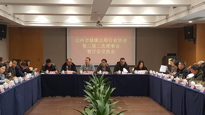 達(dá)州市城鎮(zhèn)公用行業(yè)協(xié)會第二屆二次理事會,于2017年12月21日至22日在巴中市秦川大酒店召開。達(dá)州市各縣(市、區(qū))供排水、燃?xì)狻⑹姓、風(fēng)景園林企事業(yè)單位的理事、常務(wù)理事、副會長等40余名代表參加了會議,達(dá)州市住建局城建科黃梅同志和各縣(市、區(qū))住建局分管城建領(lǐng)導(dǎo)及城建股(燃?xì)廪k)負(fù)責(zé)人到會指導(dǎo),會議由公用行業(yè)協(xié)會副會長兼秘書長李成會同志主持。