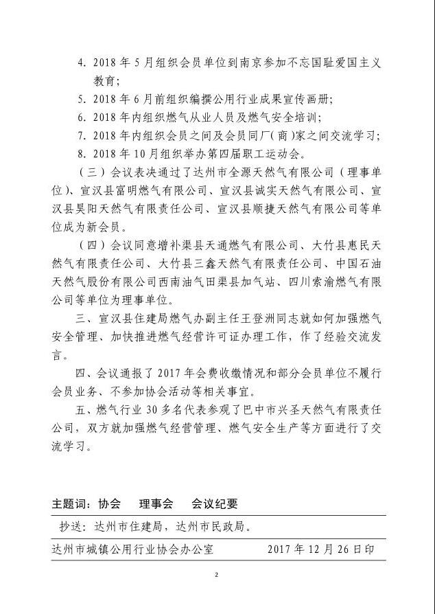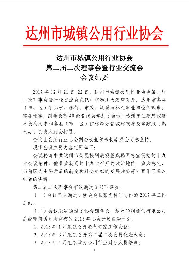達州市城鎮(zhèn)公用行業(yè)協(xié)會第二屆二次理事會暨行業(yè)交流會會議紀要