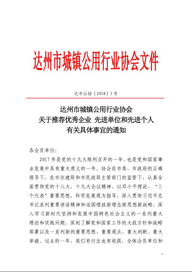 達州市城鎮(zhèn)公用行業(yè)協會關于繳納2018年度會費的通知