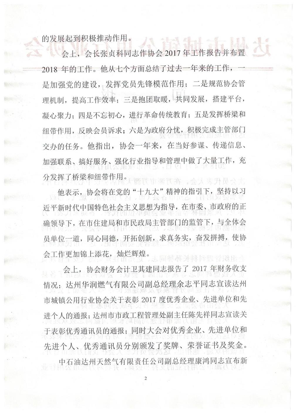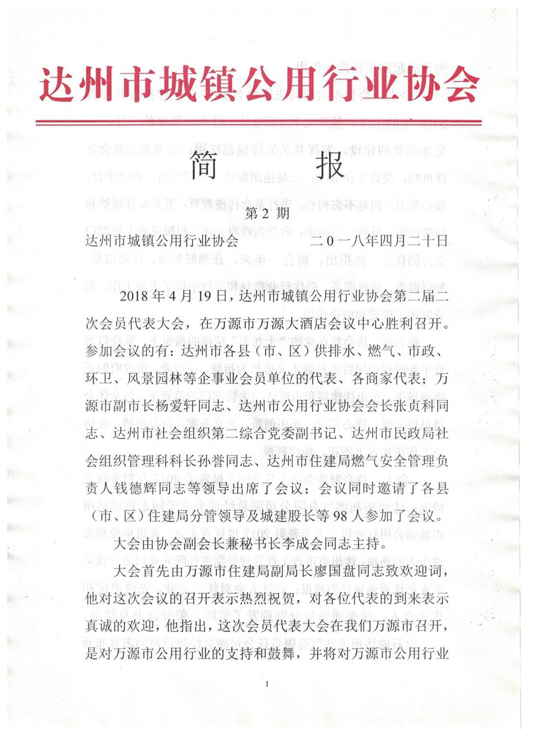 達(dá)州市城鎮(zhèn)公用行業(yè)協(xié)會2018年第二期簡報