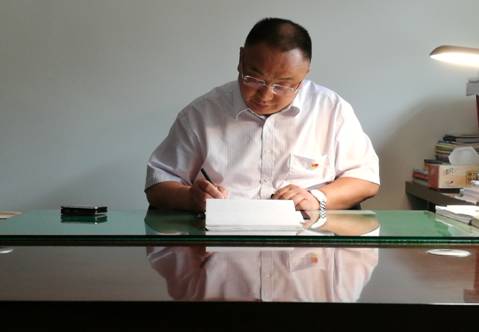 (圖為公司黨委書(shū)記、董事長(zhǎng)鄧小林同志示范引領(lǐng)并在上班期間自覺(jué)佩戴黨徽)