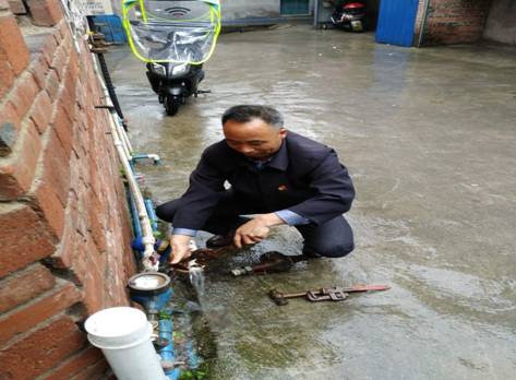 (公司黨員開(kāi)展“雙報(bào)到”實(shí)施認(rèn)領(lǐng)供水管道維修服務(wù)事項(xiàng),圖為黨員自愿服務(wù)隊(duì)黨員在幸福社區(qū)轄區(qū)進(jìn)行供水管道義務(wù)維修場(chǎng)景)
