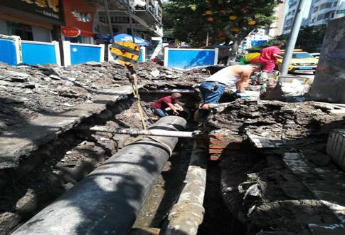 (公司黨員開(kāi)展“雙報(bào)到”實(shí)施認(rèn)領(lǐng)供水管道改造服務(wù)事項(xiàng),圖為黨員自愿服務(wù)隊(duì)在幸福社區(qū)洞天處進(jìn)行供水管道改造場(chǎng)景)