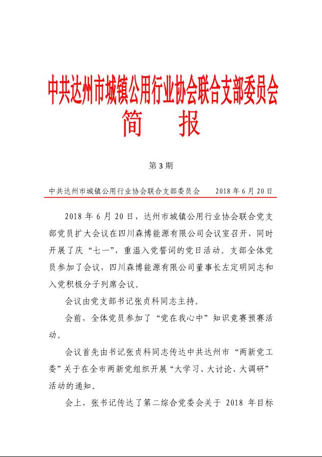 中共達州市城鎮(zhèn)公用行業(yè)協(xié)會聯(lián)合支部委員會2018年第三期簡報