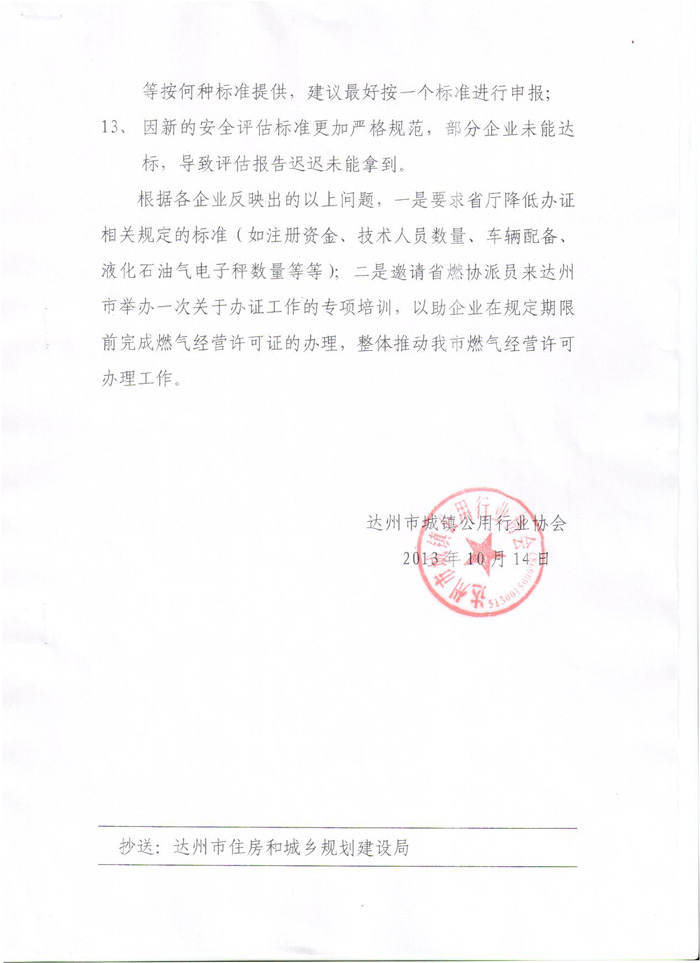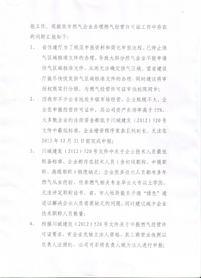 關(guān)于省住建廳及省燃協(xié)對(duì)我市然氣企業(yè)辦證若干問(wèn)題的回復(fù)