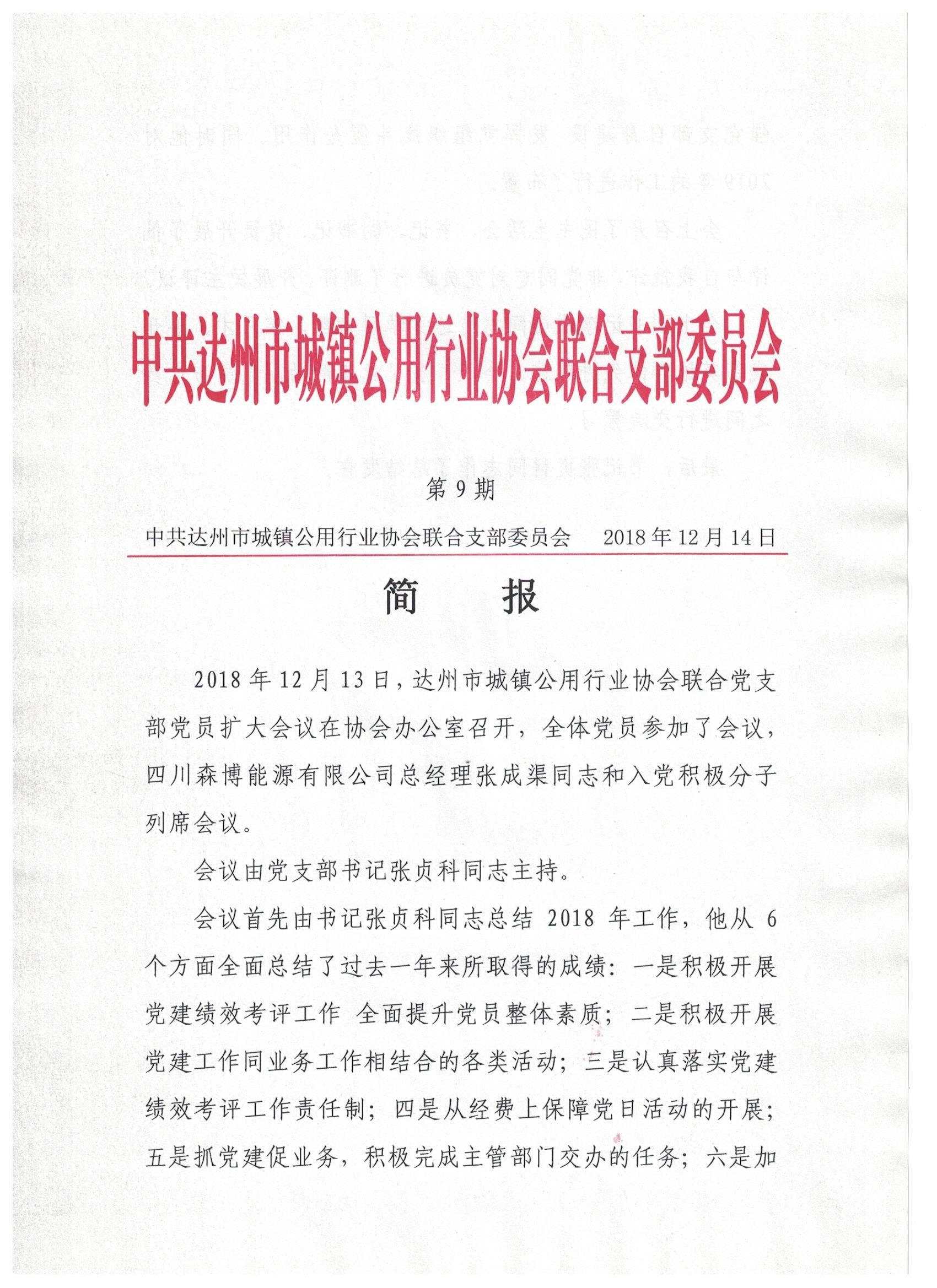 中共達(dá)州市城鎮(zhèn)公用行業(yè)協(xié)會(huì)聯(lián)合支部委員會(huì)2018年第九期簡(jiǎn)報(bào)