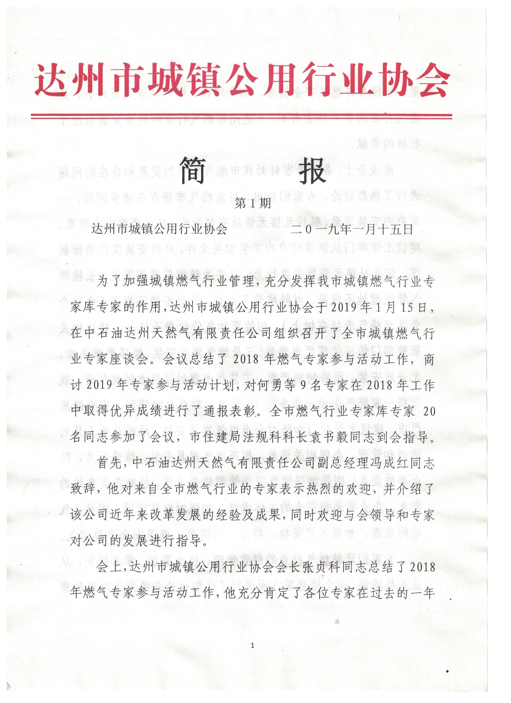 達州市城鎮(zhèn)公用行業(yè)協(xié)會2019年第一期簡報