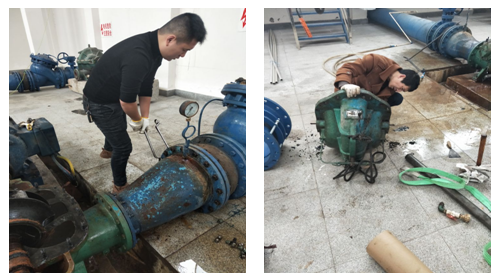 維修簡訊:近日,公司運(yùn)行管理部接報(bào)龍?zhí)侗谜?/SPAN>132KW機(jī)組的水泵出現(xiàn)漏水情況,導(dǎo)致西城水廠進(jìn)水量出現(xiàn)異常。接報(bào)后運(yùn)管部立即安排機(jī)修人員對問題水泵進(jìn)行維修,斷電、拆卸、維修、復(fù)原,經(jīng)過機(jī)修人員一上午的不懈努力,最終排除了水泵故障,恢復(fù)正常運(yùn)行。