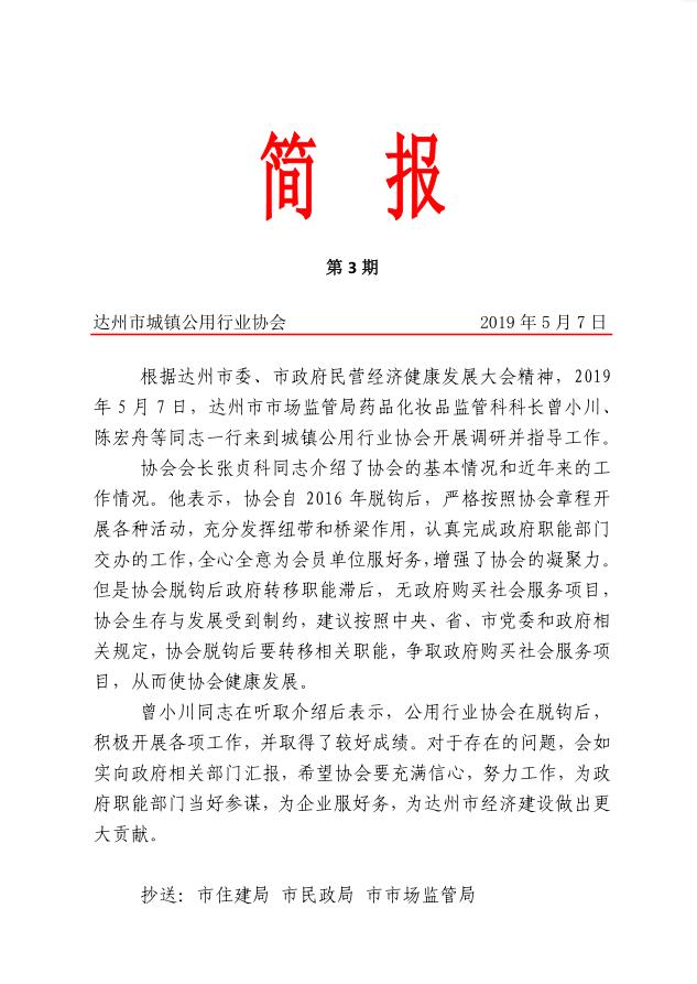 達州市城鎮(zhèn)公用行業(yè)協(xié)會2019年第三期簡報